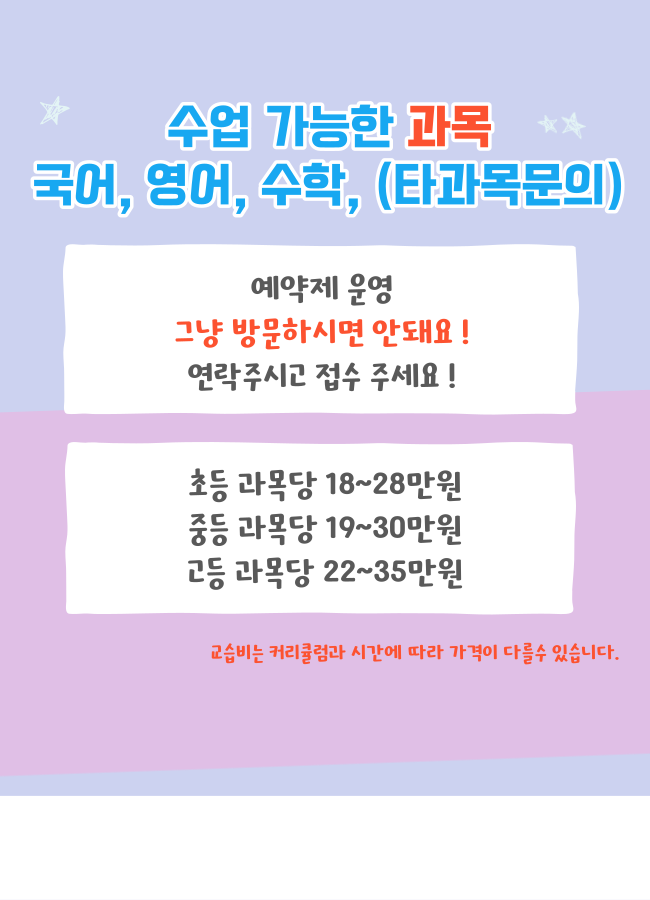 서울여고 영어학원 내신 숭문고 수학학원 근처 개별지도 주변 중등 국어 예비중 예비고 종합 전과목 고등 영수 초등 단과